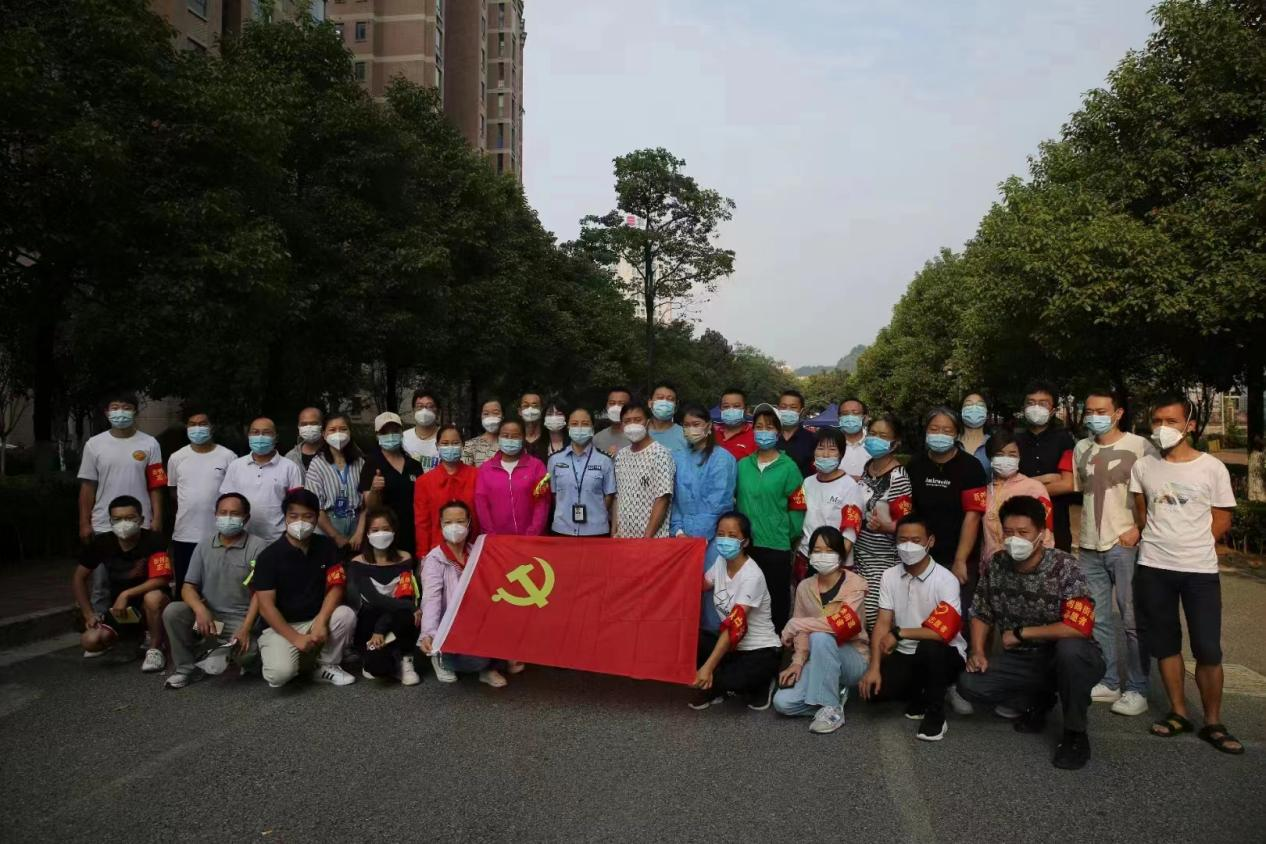 曹世興與黨員同志在一起,駐守好毓秀社區(qū)的卡點